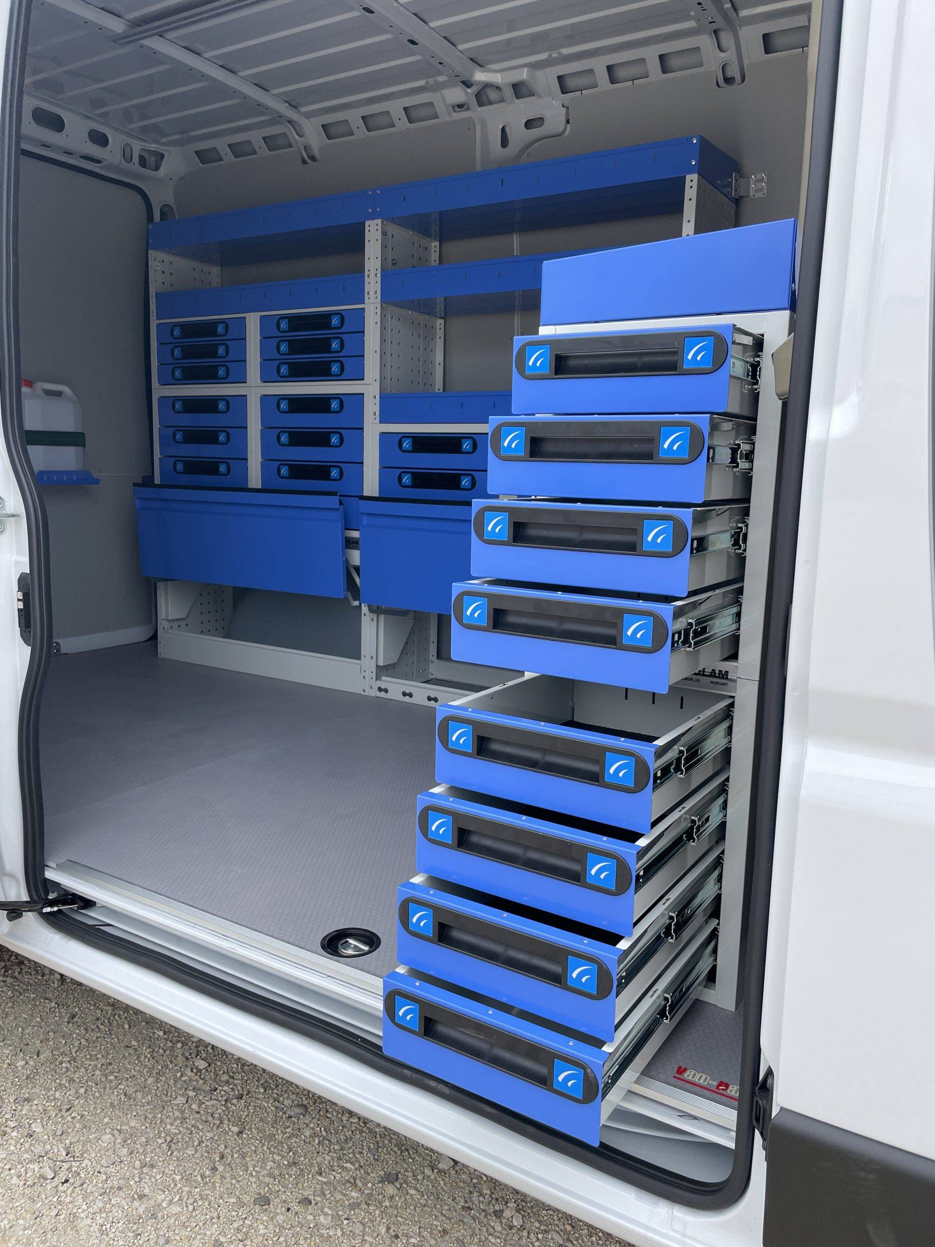 A polcrendszer az előzetesen felmért igényeknek megfelelően kerül kialakításra. Rögzítését könnyedén elvégezzük, úgy, hogy a kiszerelése és esetlegesen más autóba történő atszerelése is megoldott.Rendkívüli teherbírású polcrendszerek és kiegészítők