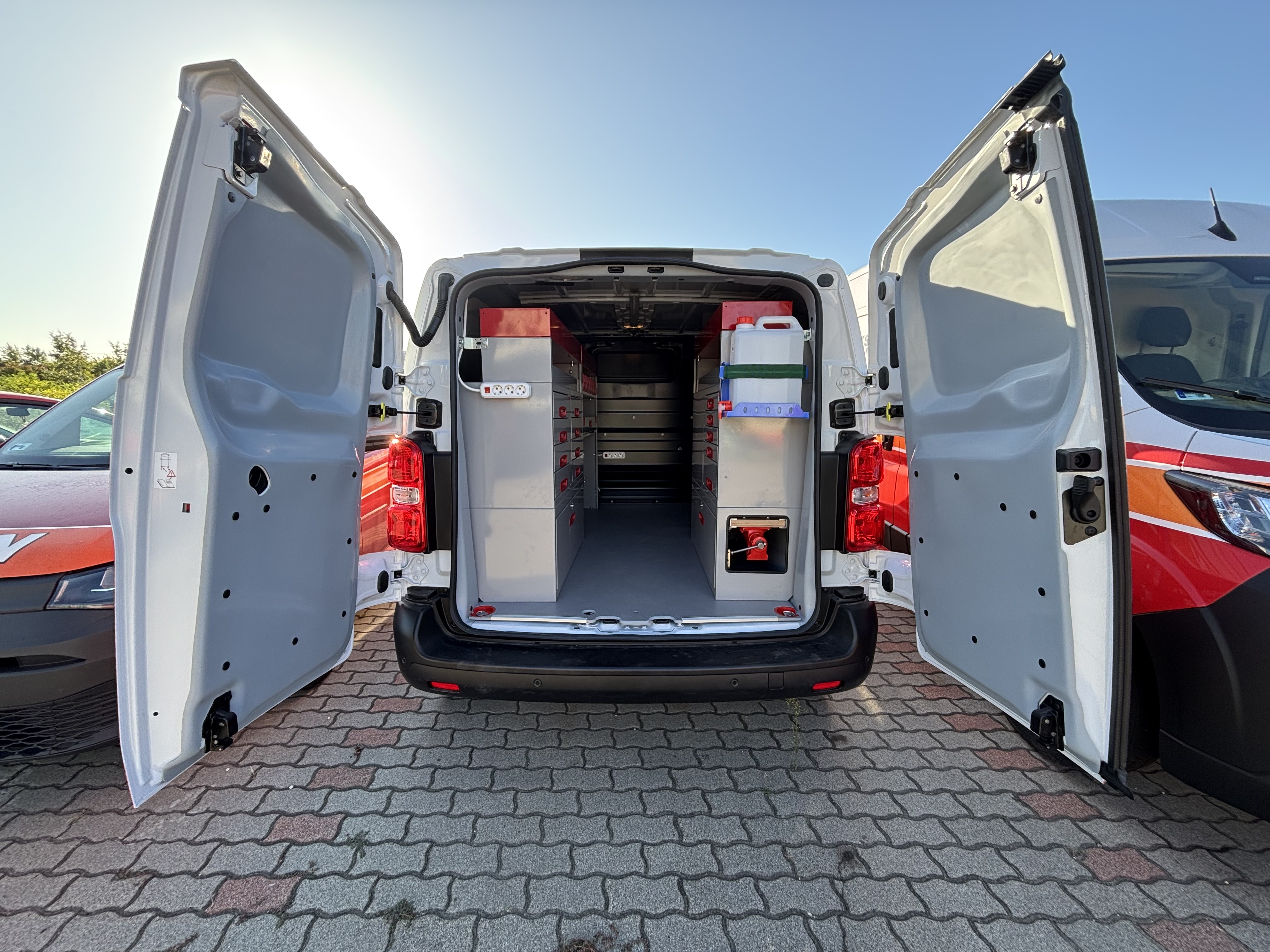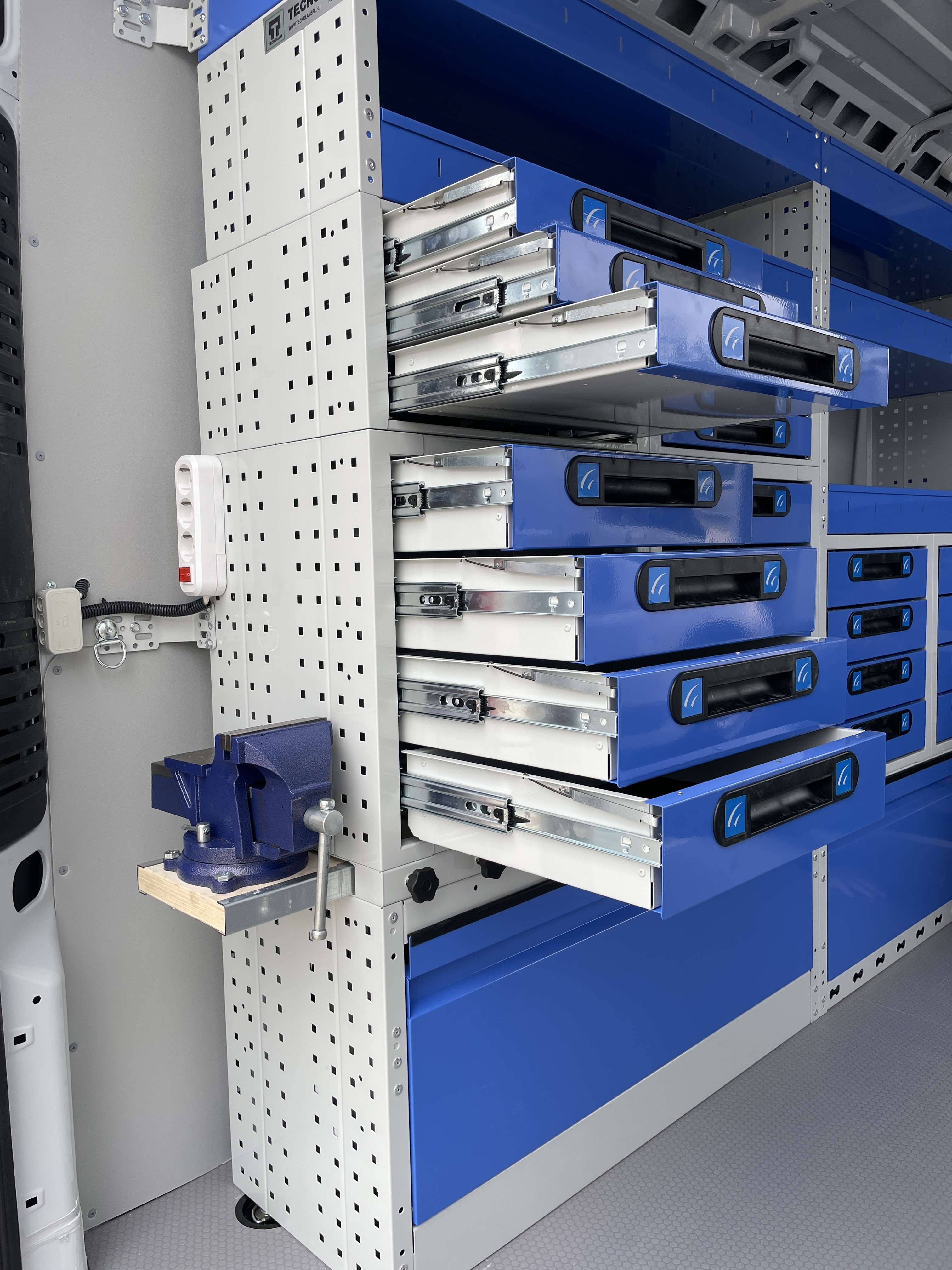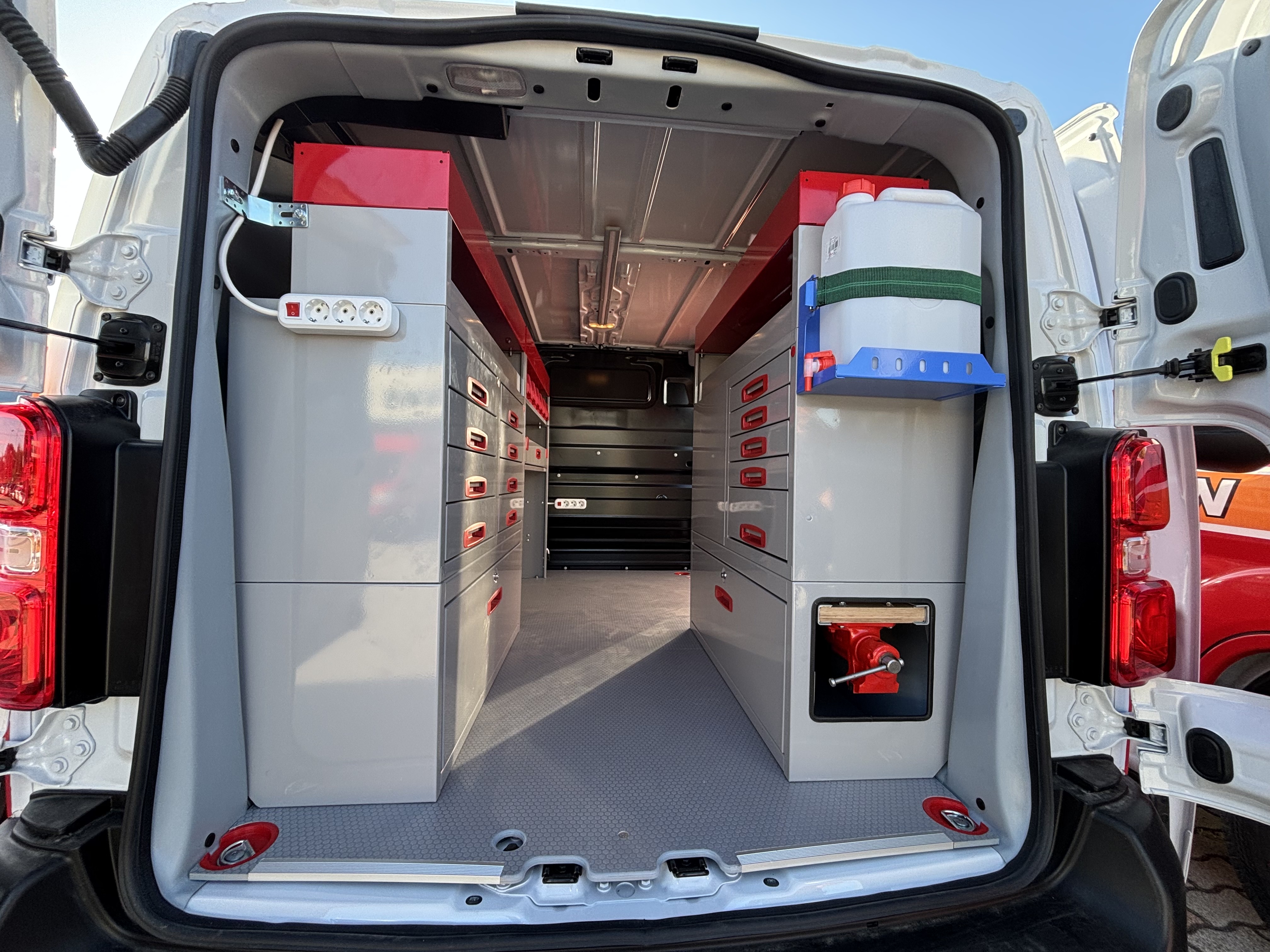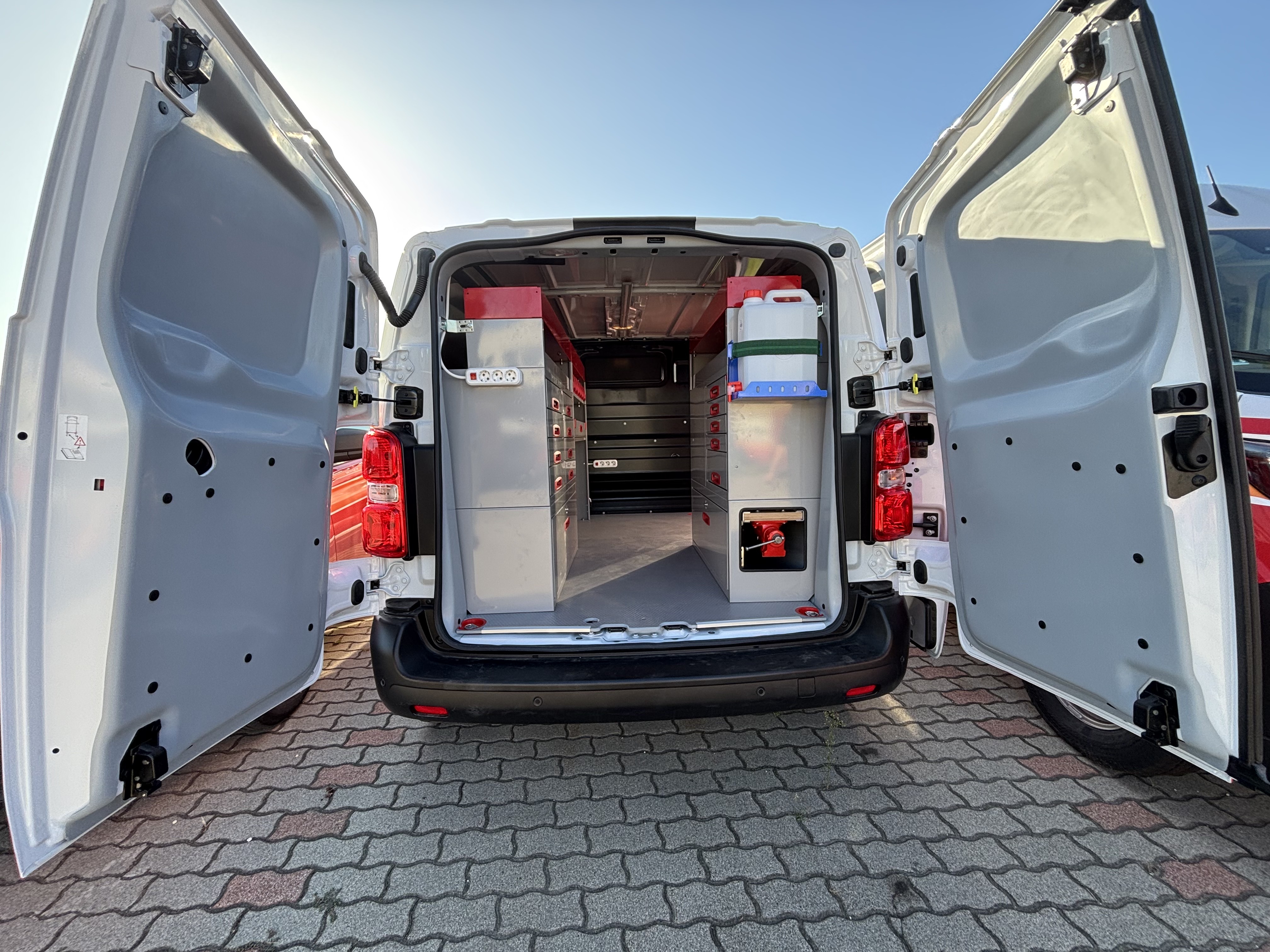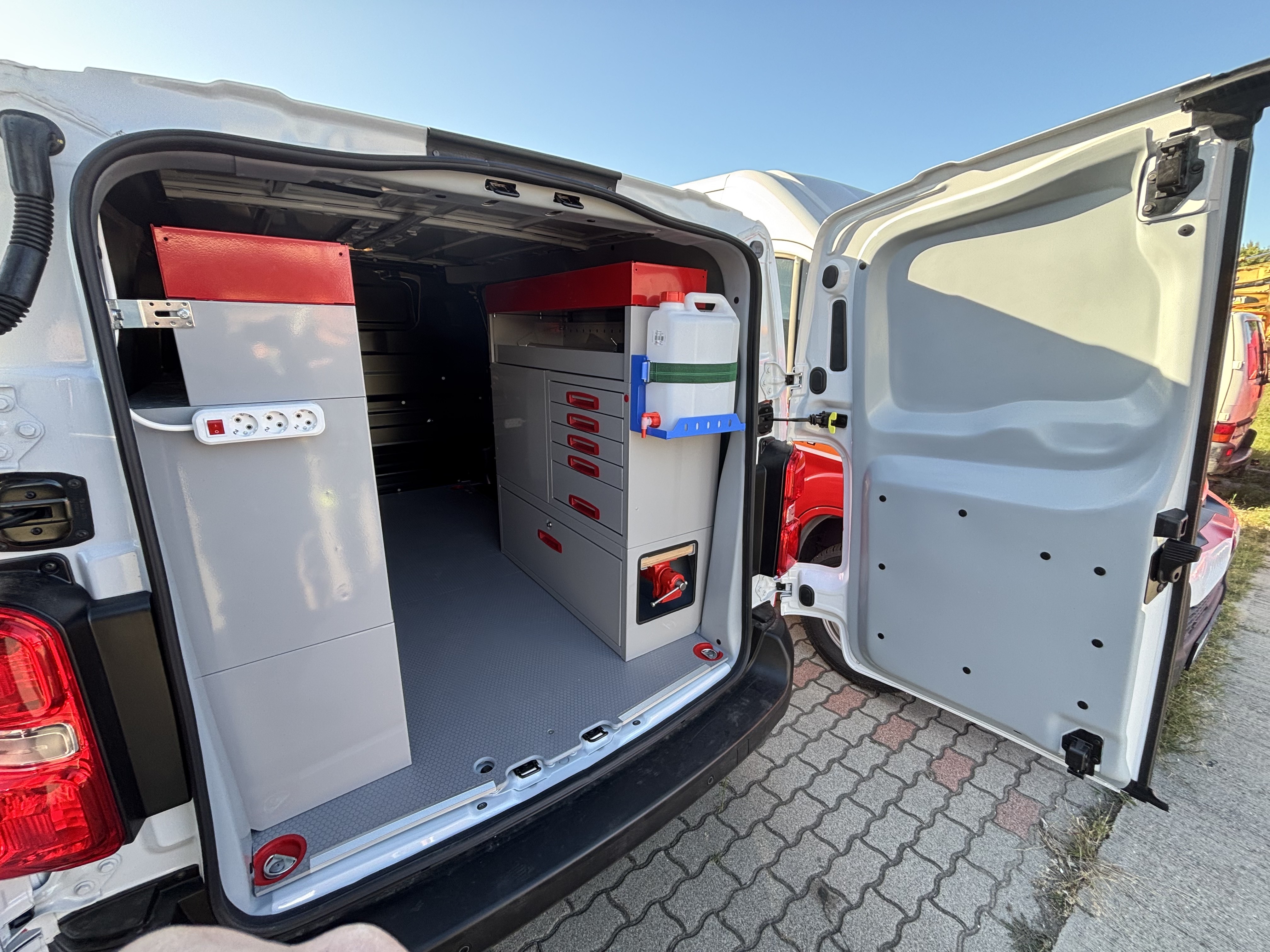 Ügyfelünk 6 db azonos autóba rendelt berendezéseket tőlünk. Gépforgalmazóként és szervizesként legtöbbször külsős helyszínen kell a gépek szervizét elvégezni. A járműberendezésen túl, szükséges volt inverterre, belső világításra, satupadra, és rengeteg tárolóra. Elégedettségét mi sem mutatja jobban, mint, hogy azóta is számos autójukat alakítottuk át szervizautónak.
